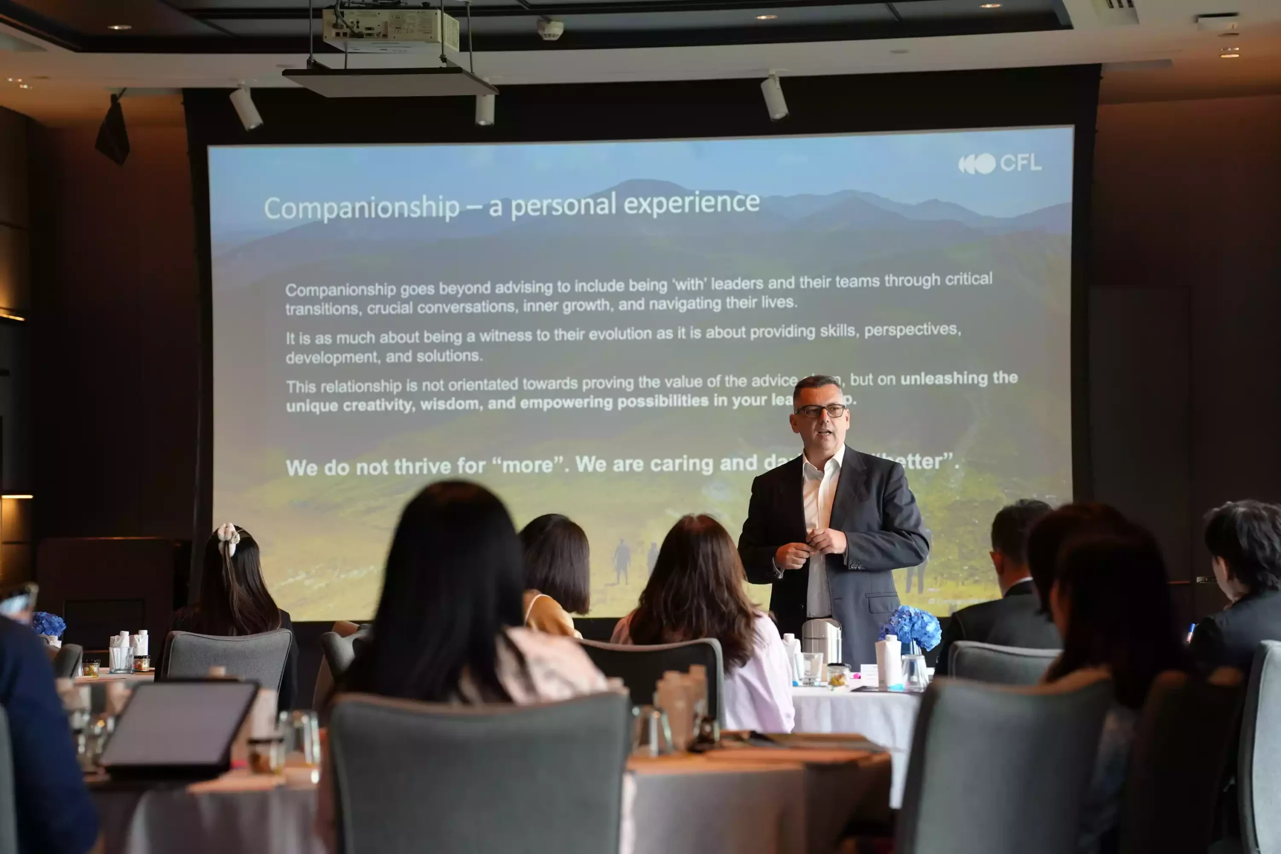Ad Astra Asia เราภูมิใจที่ได้ร่วมมือกับ Companions for Leadership (CFL) ในการนำเสนอหลักสูตรพัฒนาความเป็นผู้นำระดับโลกให้กับองค์กร ผู้เชี่ยวชาญ และผู้นำแห่งอนาคต CFL เป็นที่ปรึกษาด้านความเป็นผู้นำและการเปลี่ยนแปลงวัฒนธรรมที่ได้รับการยอมรับในระดับโลก ซึ่งได้ทำงานร่วมกับบริษัทในดัชนี FTSE 100 และ Fortune 500 และส่งผลกระทบต่อบุคลากรกว่า 150,000 คนทั่วโลก